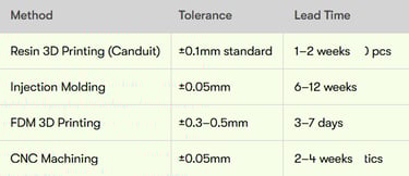 · High-Precision Tolerances Beyond ±0.05mm: Resin 3D printing has physical limits; tighter tolerances require injection molding or CNC